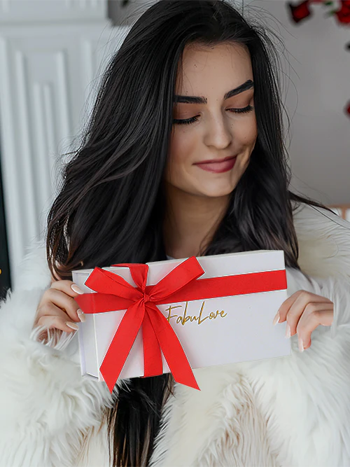 Each order includes a carefully curated Fabulove box that includes a gift bag, a specially preserved eternal rose, and a jewelry piece of your choosing. You can add engravings on each heart, or opt for no engravings!